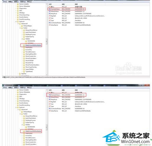 【HidedriveswithnoMedia】的【CheckedValue】的值修改为1