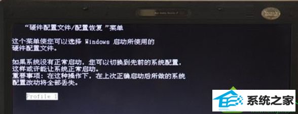 2、若是有porfile 1 跟profile 2 等两个或以上的硬件配置文件的选项,可以利用上下方向键选定一个选项后,再按键盘上的回车键去登进系统,并要注意下改变选项文件名称。谨记能登进win10系统的那项,等级系统界面后再去做处理。