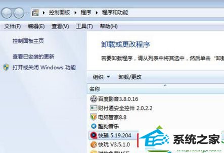 2、找到当前系统安装的新版本的快播5,当然您也可以直接在 开始菜单---所有程序---找到快播的卸载快播也可以;