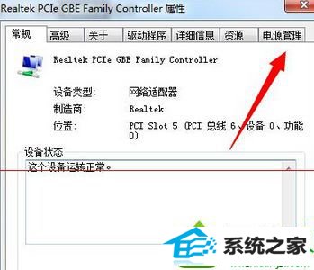4、进入网卡属性对话框,点击上方【电源管理】;