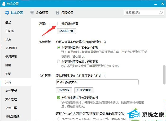 以上就是win10系统QQ收到消息没有提示音的解决方法,希望上述方法可以帮助大家,