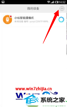 4、打开小蚁智能摄像机app,点击右下角的“+”按钮,利用“二维码”进行配置,同时输入wiFi密码进行连接操作;