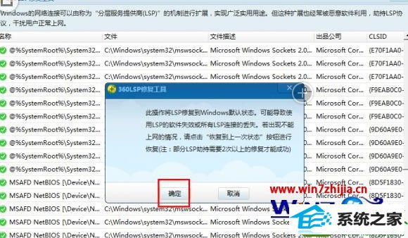 1、使用360卫士或其他修复Lsp工具修复恢复window默认状态即可解决;