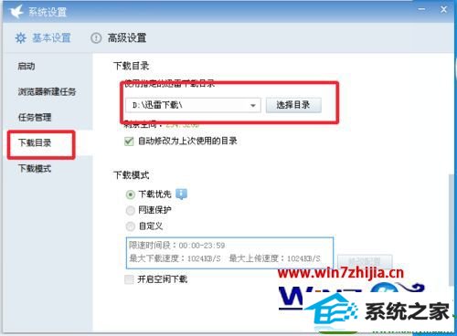 5、在左侧我们可以看见下载目录的选项卡,默认是d盘的迅雷下载的文件夹;