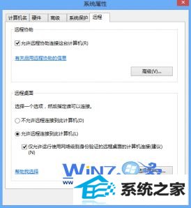 今天和大家分享一下关于对win8系统远程桌面连接控制win8设置的方法,在使用win8系统的过程中经常不知道如何去对win8系统远程桌面连接控制win8进行设置,有什么好的办法去设置win8系统远程桌面连接控制win8呢?在这里小编教你只需要1、首先在win8系统中,右键点击计算机,选择属性,然后在属性界面中切换到“远程”选项卡,然后勾选“允许远程连接到计算机”项; 2、接着在windows8中打开桌面远程连接,然后在框中输入win8计算机的ip地址,点击连接按钮就搞定了。下面小编就给小伙伴们分享一下对win8系统远程桌面连接控制win8进行设置的详细步骤: