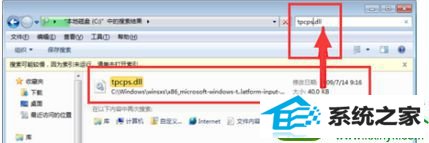 4、在C盘的右上角找到搜索的地方,搜索“tpcps.dll”;