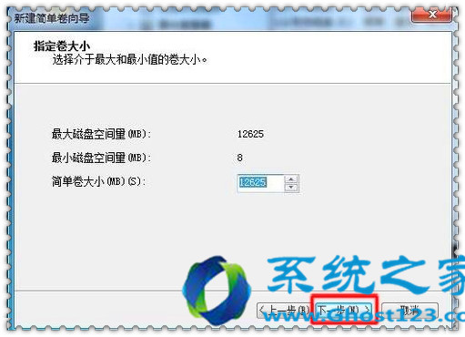 进入新建容易卷向导,单击“下一步”继续