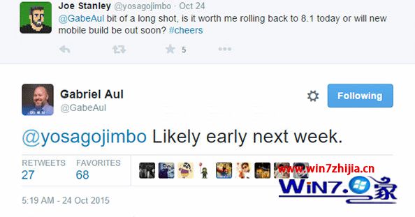 windows insider项目负责人Gabriel Aul此前表示10575版本已经修复了该问题,目前正在内部测试。根据最新消息,本周初很可能会推送新的win7 Mobile预览版。