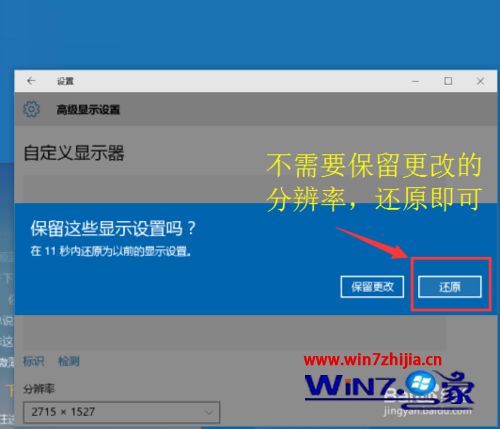 5、不需要保留本次设置的分辨率,选择“还原”。更改分辨率只是为了让系统重新调整桌面的程序位置,所以“消失”的程序又出现了;
