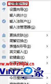 1、切换出搜狗输入法,在输入条上单击右键,选择“设置属性”;