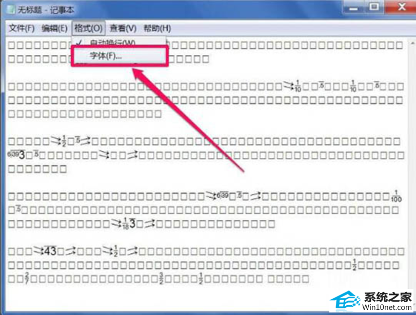 今天小编分享一下win10系统txt文本文档出现乱码问题的处理方法,在操作win10电脑的过程中常常不知道怎么去解决win10系统txt文本文档出现乱码的问题,有什么好的方法去处理win10系统txt文本文档出现乱码呢?今天本站小编教您怎么处理此问题,其实只需要 1、如果遇到文本文档乱码,我们应该想一想是不是因为设置错了文本文档的字体,首先选择“格式”选项里面的字体,可能会发现已选中的默认字体不是中文字体。 2、然后选择我们常用的几种中文字符字体,例如微软雅黑,宋体等。在这里举例选择“宋体”,脚本选择“中文 GB2312”,然后确定。就可以完美解决了。下面就由小编给你们具体详解win10系统txt文本文档出现乱码的图文步骤: