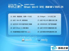 系统之家Ghost W10 32位 安全装机版 v2020.04在追求速度的基础上充分保留原版性能及兼容性。自带万能驱动智能安装兼容硬件驱动,99%的电脑无需手动安装驱动,同时系统添加大量SATA控制器驱动,支持新式主板、高端笔记本安装使用。...